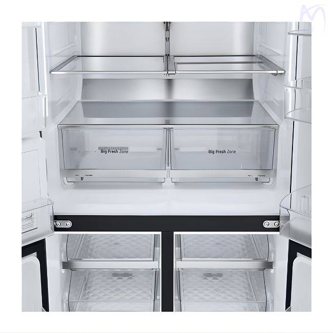 یخچال الجی X39 با بدنه استیل تیره و طراحی چهار درب، بهراحتی قلب هر آشپزخانه مدرن را تسخیر میکند.