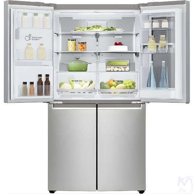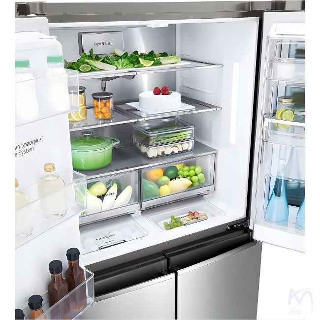 با سیستم Multi-Air Flow و Surround Cooling، هوای خنک از چند جهت وارد یخچال میشود تا همه جای داخلی به صورت یکنواخت خنک شود — حتی در نزدیکی دربها. به علاوه، DoorCooling+ کمک میکند دمای درب با بقیه بخشها هماهنگ شود. نتیجه: کاهش نقاط گرم و افزایش عمر مفید مواد غذایی.