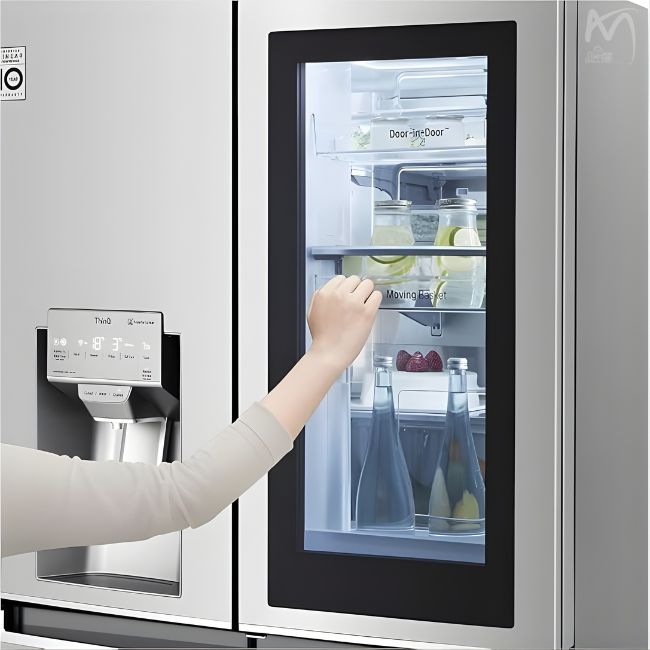 - با دو ضربه روی شیشه درب، داخل یخچال را میبینی بدون اینکه در را باز کنی — هوای سرد حفظ میشود و مصرف انرژی پایین میآید.