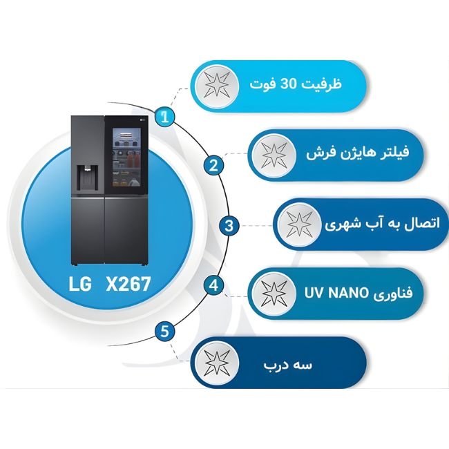 یخچال فریزر ساید بای ساید الجی X267 از محصولات با کیفیت و پیشرفته برند الجی است که به دلیل ویژگیهای منحصر به فردش، توجه بسیاری از مصرفکنندگان را جلب کرده است. این یخچال فریزر در بازار تحت عنوان مدل X267 شناخته میشود، اما نام کامل آن GC-X267CQHS یا GR-X267CQHS است.