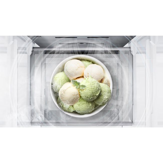 در این سیستم پیشرفته، هوای سرد از طریق چندین دریچه اختصاصی که در طبقات مختلف تعبیه شده، بهطور یکپارچه و یکنواخت در سراسر یخچال و فریزر پخش میشود. این یعنی: