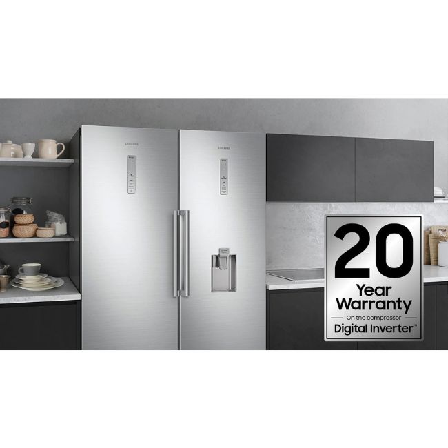 یکی از ویژگیهای کلیدی یخچال و فریزر دوقلو سامسونگ مدل RZ32 / RR39، استفاده از کمپرسور اینورتر دیجیتال (Digital Inverter Technology - DIT) است؛ فناوریای که نهتنها مصرف انرژی رو بهشدت کاهش میده، بلکه طول عمر دستگاه رو هم افزایش میده.